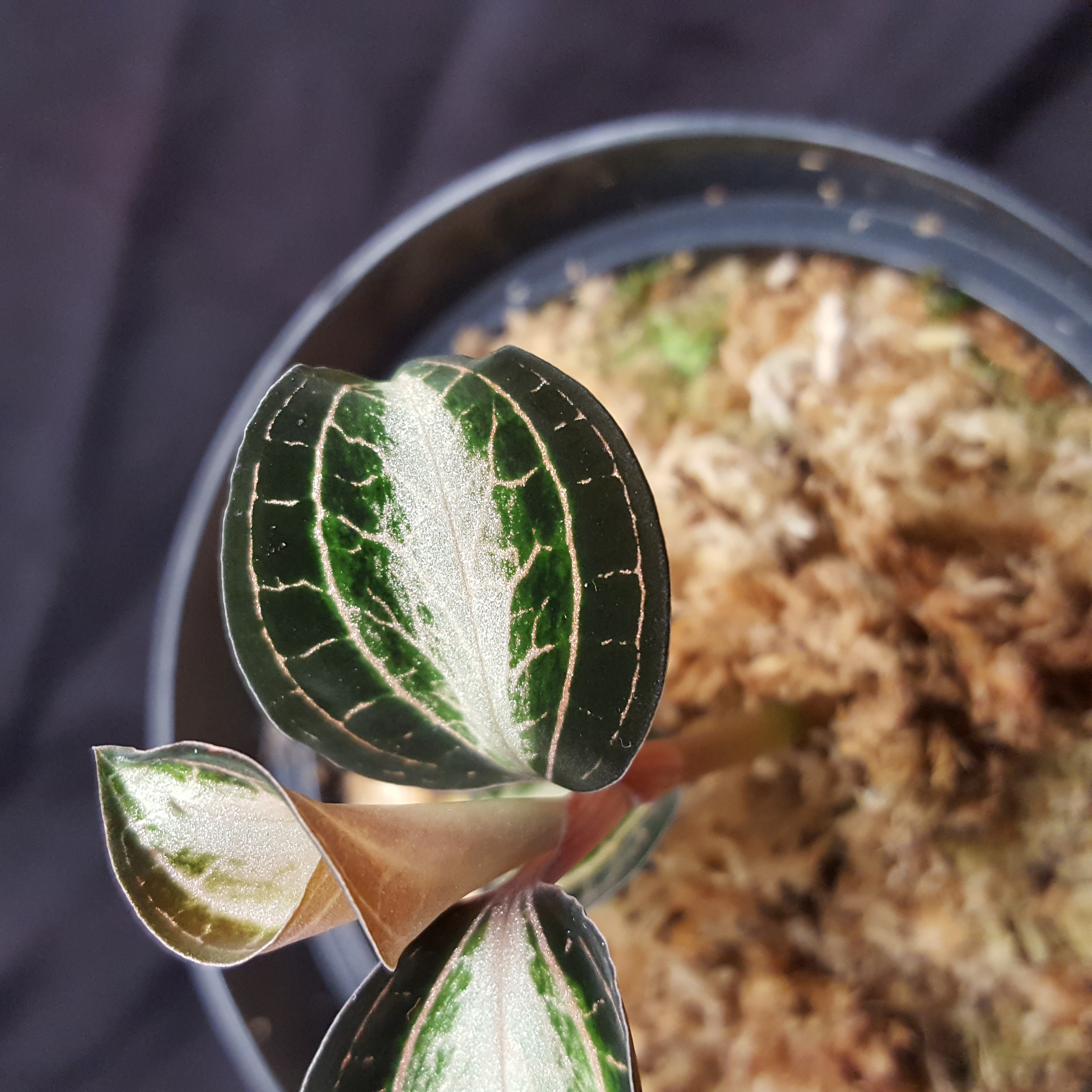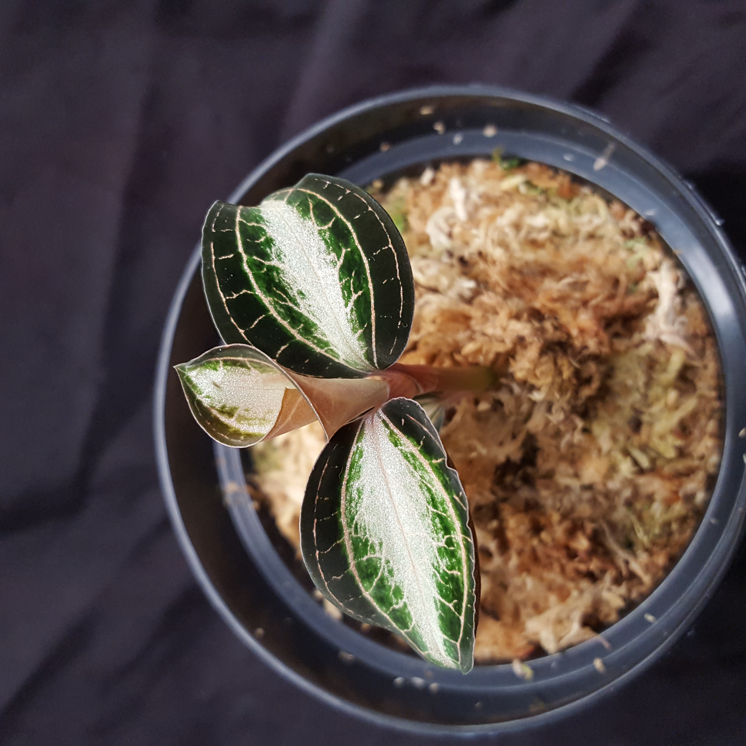 Anoectochilus albolineatus ‘Antarctica’ Parish & Rchb. f. 1874 is a novelty in my assortment and has inspired me from the very beginning. Anoectochilus albolineatus ‘Antarctica’ enchants with its incredibly vivid leaf colouring. The interplay of colours in the design of the leaf colouring is fascinating. In my experience, it grows quite slowly and does not show any pronounced root growth. As an inhabitant of the jungle floor, it should not be exposed to direct sunlight. It likes high relative humidity and should be kept in a substrate that is always moist but not wet. I keep it in pure Sphagnum and have had good experiences with it. The Anoectochilus albolineatus ‘Antarctica’ young plants for sale are potted and are similar to the Anoectochilus albolineatus ‘Antarctica’ shown in the pictures. They are best kept at normal room temperature, if possible in an open glass container such as a lantern, a wide vase, a terrarium or something similar. This jewel orchid is often sought after for its beauty and is certainly a highlight in any collection. Not suitable for consumption without a pot. Waterlogging is very likely to kill it. Please also be sparing with fertilising and, if possible, only use rainwater for watering. The pictures shown are examples, the plant you purchase is similar to the pictures. You are buying a young plant.