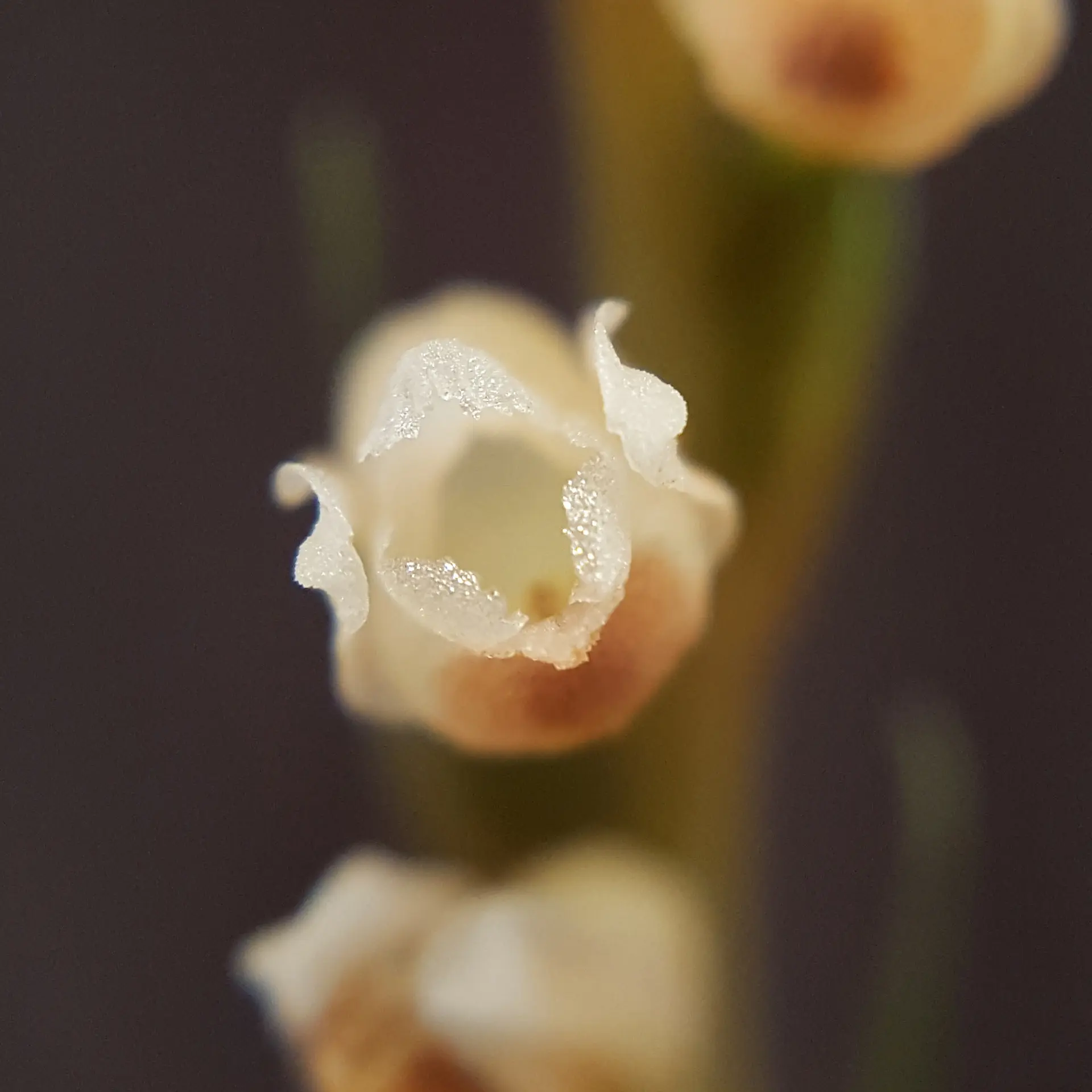 Goodyera pusilla ‘Dreaming Track’ Blume 1858 is a Southeast Asian jewe orchid that requires temperate cultivation. The species of the Goodyera genus make up a large proportion of the jewel orchids - yet there are only a few Goodyera species on the market. The elongated leaves are multi-coloured and interwoven with a network of light veins. The flowers of Goodyere pusilla ‘Dreaming Track’ are numerous but small. Goodyera pusilla ‘Dreaming Track’ does not like direct sunlight, otherwise the leaves will fade. It is best to use rainwater for watering. Use liquid fertiliser sparingly, as this jewel orchid does not grow vigorously. Below the inflorescence, Goodyera pusilla ‘Dreaming Track’ forms a new shoot from the last node, so that the plant continues to grow by creeping on the substrate. A real feast for the eyes and a must for any advanced jewel orchid collection. The pictures shown are exemplary, the plant you purchase is similar to the pictures. You are purchasing a young plant.
